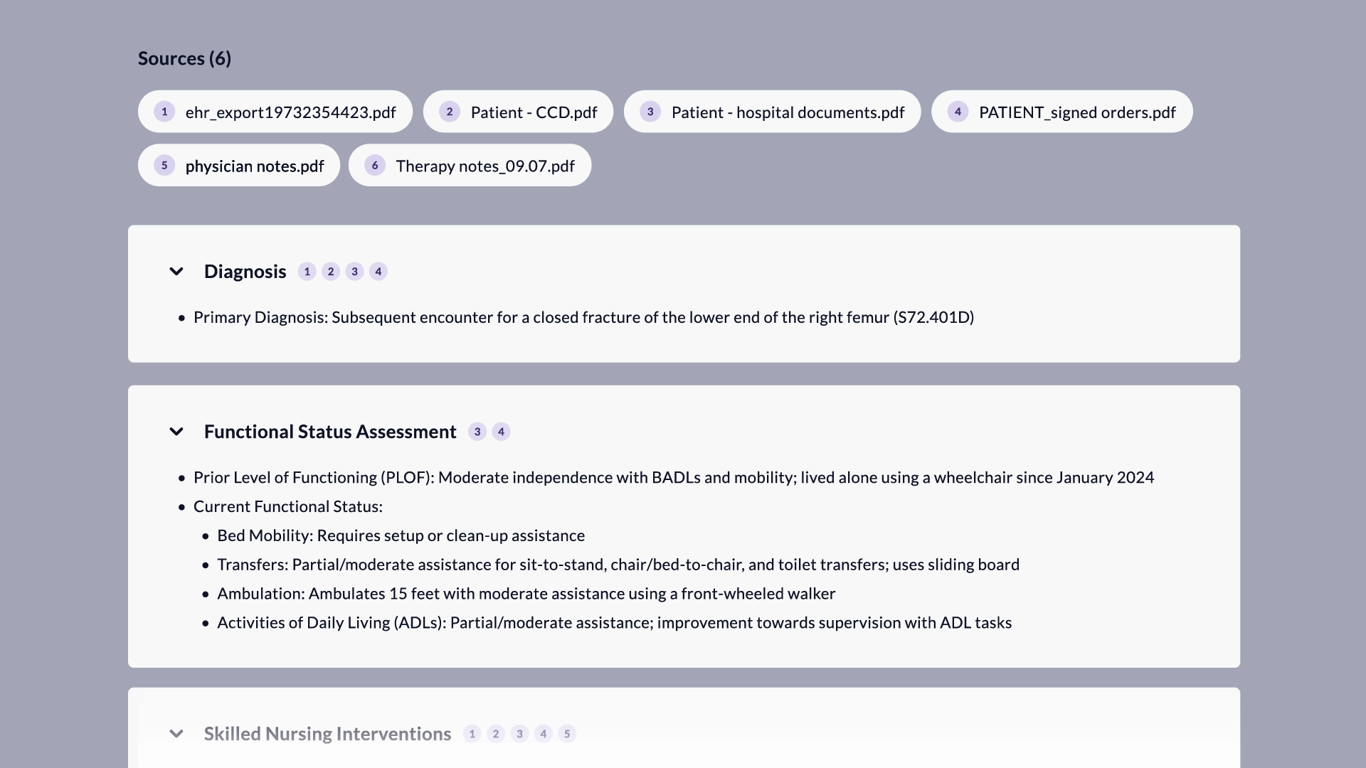 Healthcare workers are drowning in administrative chaos, bottlenecked by having to sift through several pages of documentation. Olio's Summarization Workspace transforms this process by condensing clinical records into a single, clear summary of the most essential information.